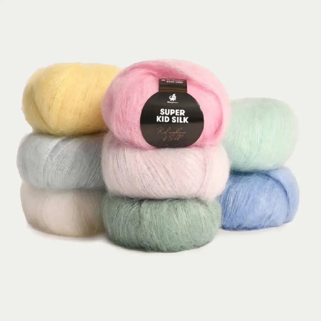 Super Kid Silk er et ideelt valg, hvis du ønsker et let, luksuriøst og eksklusivt garn. Det kombinerer høj kvalitet med en blød og komfortabel strikkeoplevelse.